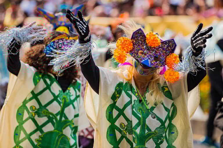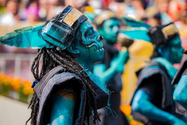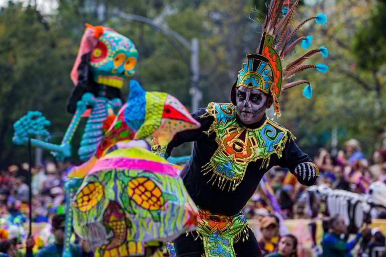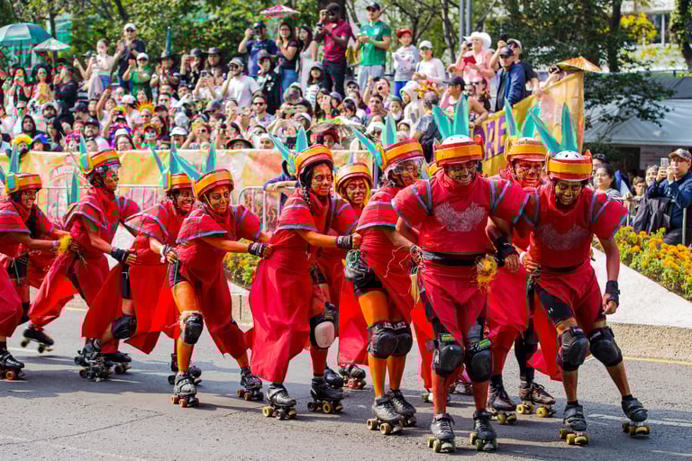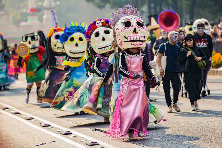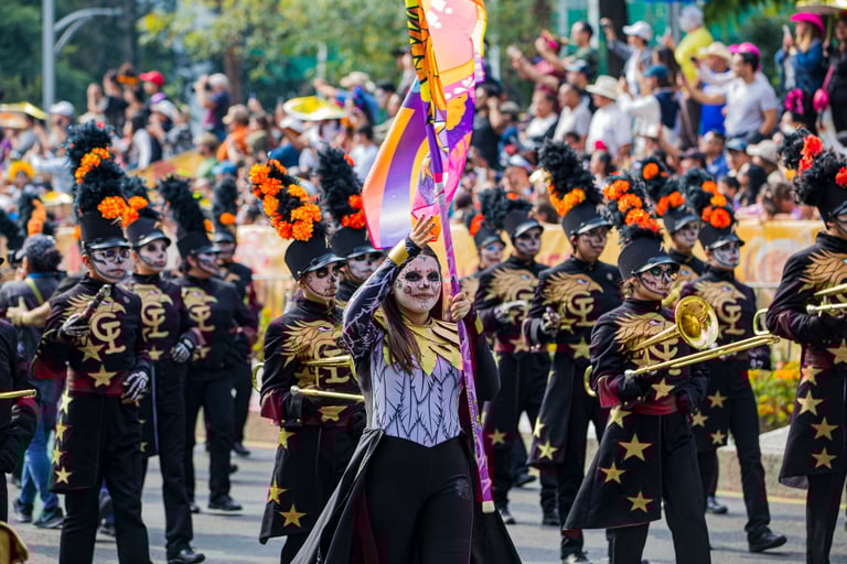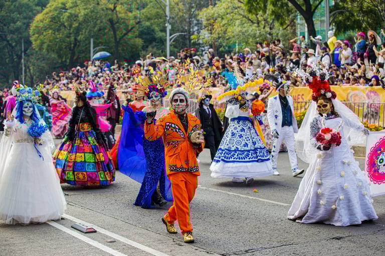 Hoje, o desfile é uma explosão de cores, com fantasias de caveiras, catrinas elegantes e roupas vibrantes em tons de laranja, roxo, rosa e dourado. Milhares de pessoas participam, celebrando a vida dos que partiram com arte, música e alegria. Uma tradição moderna que já virou símbolo cultural.