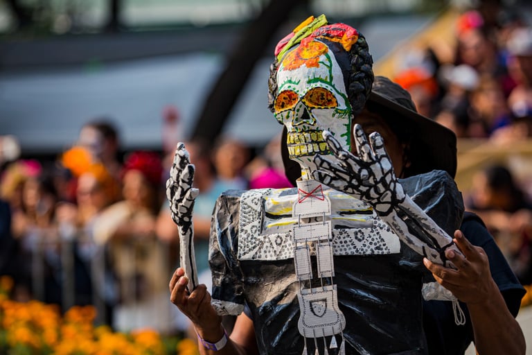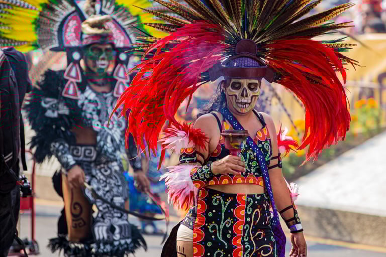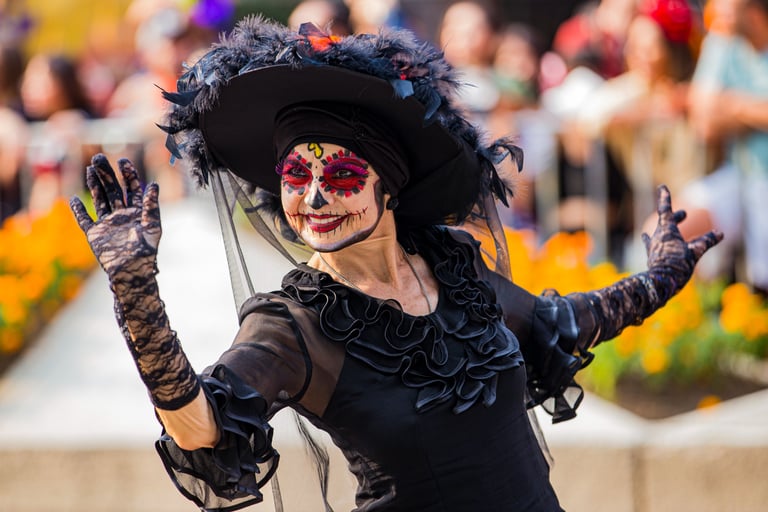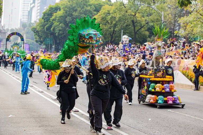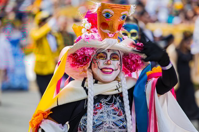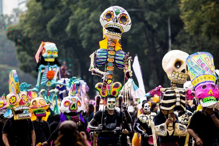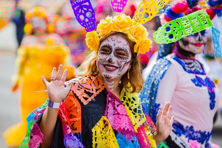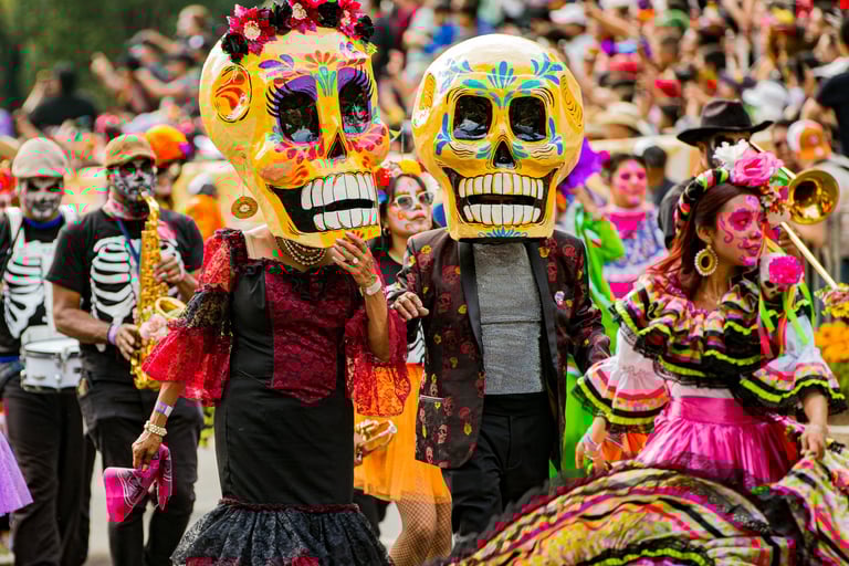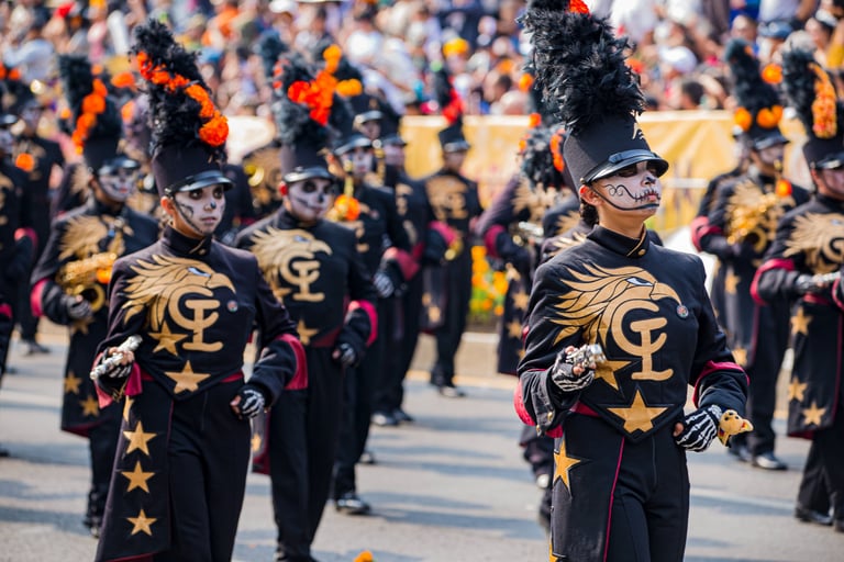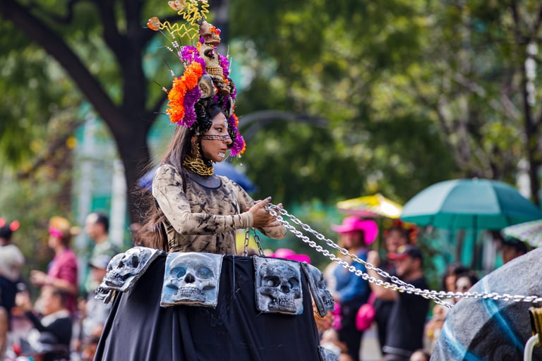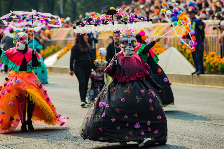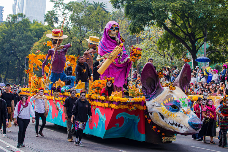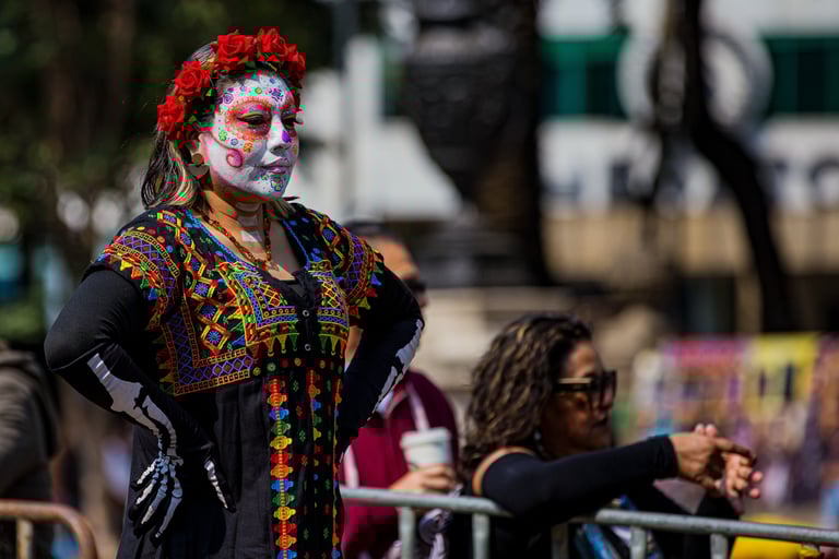 Hoje, o desfile é uma explosão de cores, com fantasias de caveiras, catrinas elegantes e roupas vibrantes em tons de laranja, roxo, rosa e dourado. Milhares de pessoas participam, celebrando a vida dos que partiram com arte, música e alegria. Uma tradição moderna que já virou símbolo cultural.
