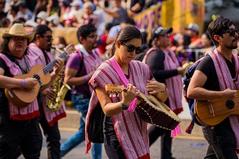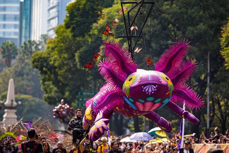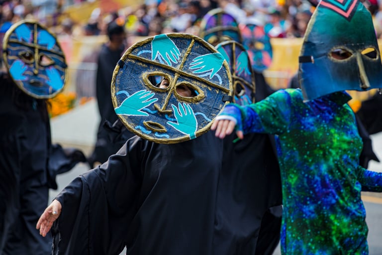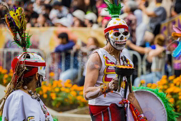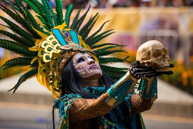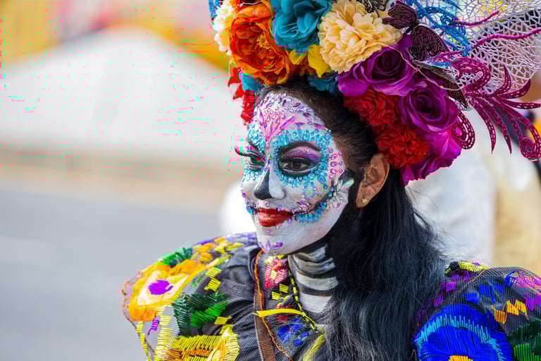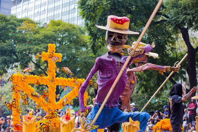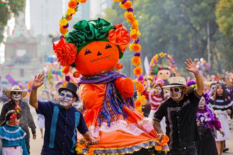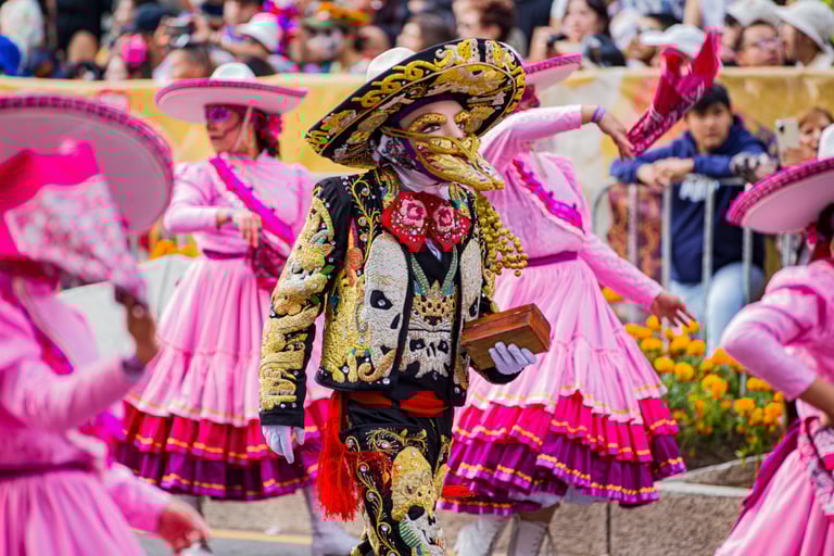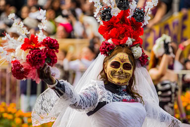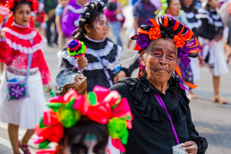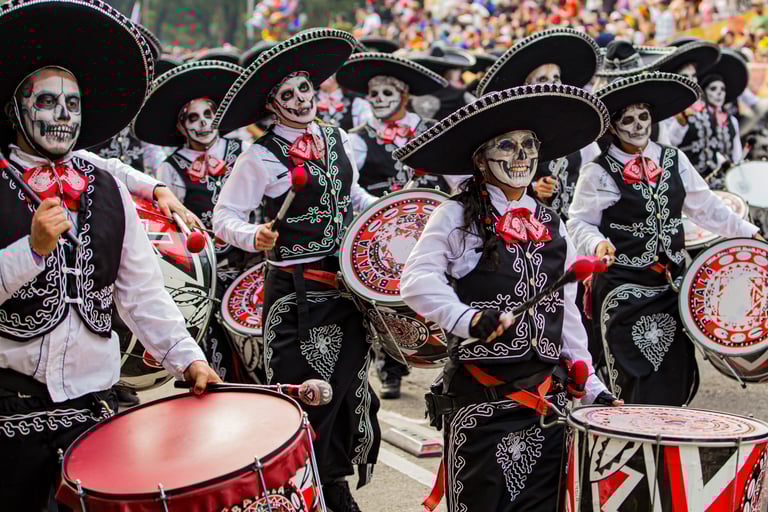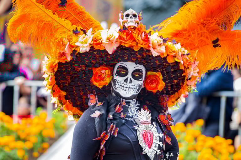Hoje, o desfile é uma explosão de cores, com fantasias de caveiras, catrinas elegantes e roupas vibrantes em tons de laranja, roxo, rosa e dourado. Milhares de pessoas participam, celebrando a vida dos que partiram com arte, música e alegria. Uma tradição moderna que já virou símbolo cultural.